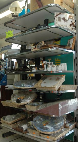 Coffrets de verres différents formats, carafes, pendules, assièttes décoratives, dessous de plats, lampes, plats de services, malettes de couteaux, verres soufflé, plateaux, poivre et sel.